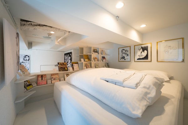 MANGA ART ROOM, JIMBOCHO là một dự án khách sạn mới của MANGA ART HOTEL, TOKYO. Các phòng riêng của khách sạn, được chia thành “MANGA CAVE WHITE” và “MANGA CAVE BLACK”, được lấy cảm hứng từ màu đen và da trắng của các trang truyện tranh. Mỗi phòng còn được trang bị phòng xông hơi khô riêng có tên “KUHAKU (không gian đen)”, nơi “mọi thứ can thiệp vào trí tưởng tượng của bạn sẽ được thiết lập lại”.